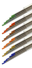 If you look at our sales from users around the world, ArcTime™ Hybrid (color code: Sky Blue) is the most popular and the 2% Ceriated (color code: Orange) and Lanthanated (color code: Dark Blue) are the second most popular, especially for precision fabricators. Again that is based on our sales and conversations with fabricators and leading power supply manufactures – (Weldcraft will be adding 2% Lanthanated to their product line shortly, and they currently offer a Rare Earth material, which is a generic material designed to compete with ArcTime™, Trimix, and Multistrike).