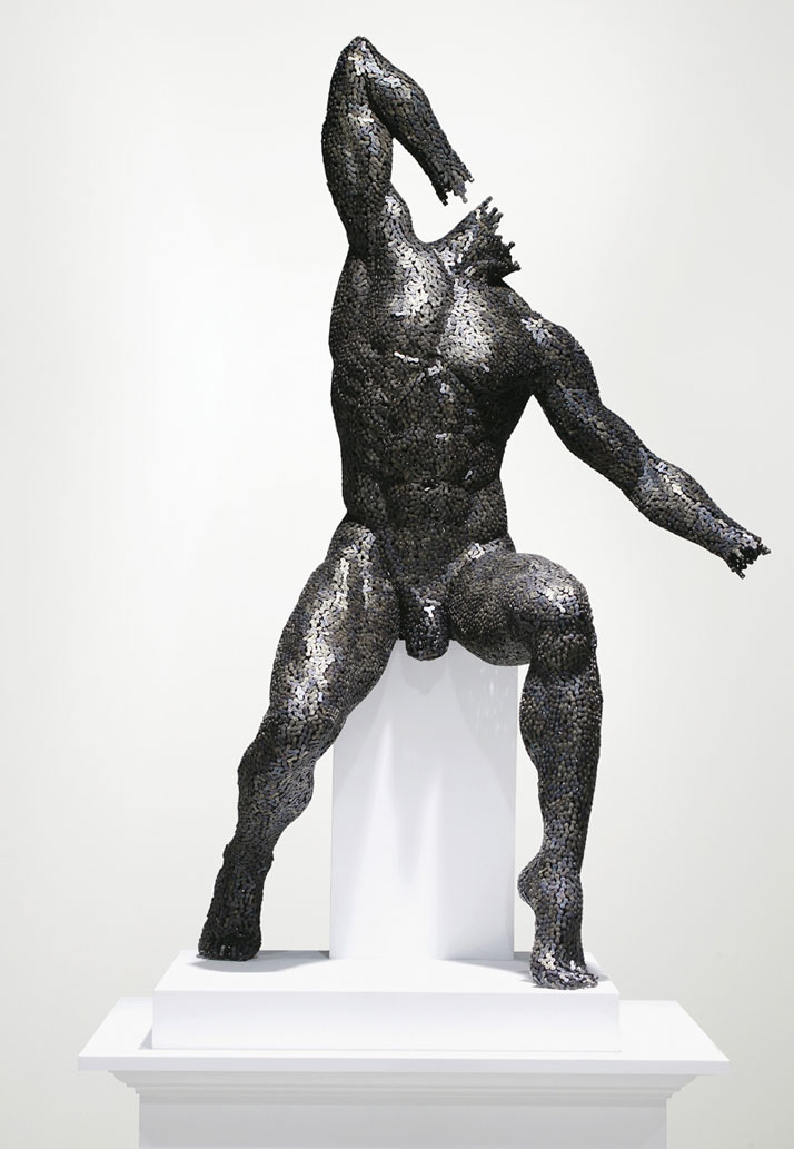 NUMBER 5 is for the ladies out there! Seo Young Deok, a brilliant Korean metal artist, created this piece of art. It’s a sculpture of a man who I HOPE is wearing Speedos, in a very focused Yoga pose. Or maybe he’s is just freaking out about that mouse he’s pointing at on the floor – while wearing Speedos. But seriously folks, Seo Young Deok is amazing; he meticulously creates his nude sculptures by welding metal bicycle chain links piece by piece. I wonder how long it takes to create one of his sculptures, or how he locates each piece of chain to make such compound 3D shapes. Pretty amazing.