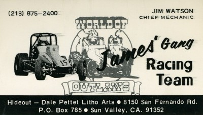From there I was hooked on racing, on cars, and on metal fabrication and began working as a mechanic on a couple of local teams. One day I was approached by this young, fast driver, Lee James and his father in-law who were looking to put together a team to sweep the World of Outlaws. They hired me: Lee James, Driver and James Watson, Chief Mechanic, became the James’ Gang Racing Team.