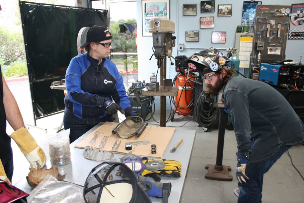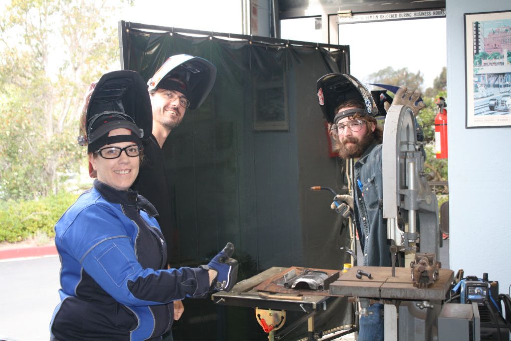 Joanie, cuttin’ it up (or maybe welding something up) with our operations manager Maureen