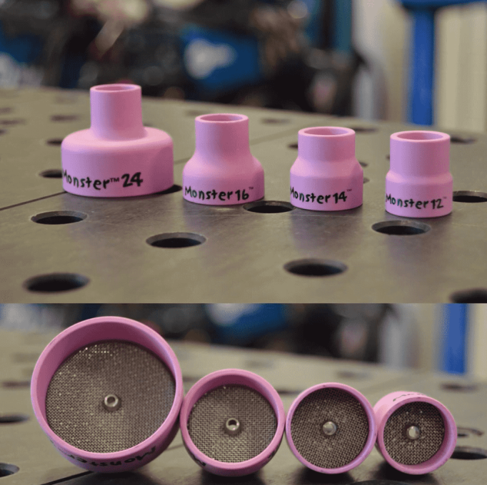 If you’re using the Toxic style nozzle you’re in luck: The Monster 12 & 14 are direct replacements. You can order complete Monster cup kits, or just the ceramic nozzle, or screen stack. Choose from 1/16″ (1.6mm) & 3/32″ (2.4mm) tungsten guide sizes! Best of all, there’re available when you need them along with the most complete line of TIG welding products for simple, one stop shopping! Arc-Zone.com has been delivering quality welding equipment for over 15 years. Our business is based on helping you build yours👊ðŸ»